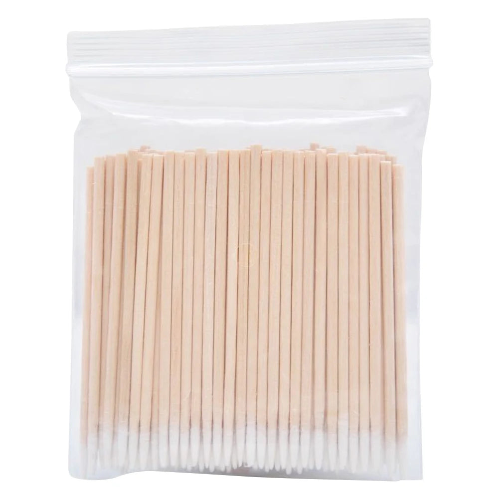 100Pcs Wood Cotton Swab Manicure Clean Sticks Buds Tip Wood Cotton Head Swab Manicure Detail Corrector Nail Polish Remover