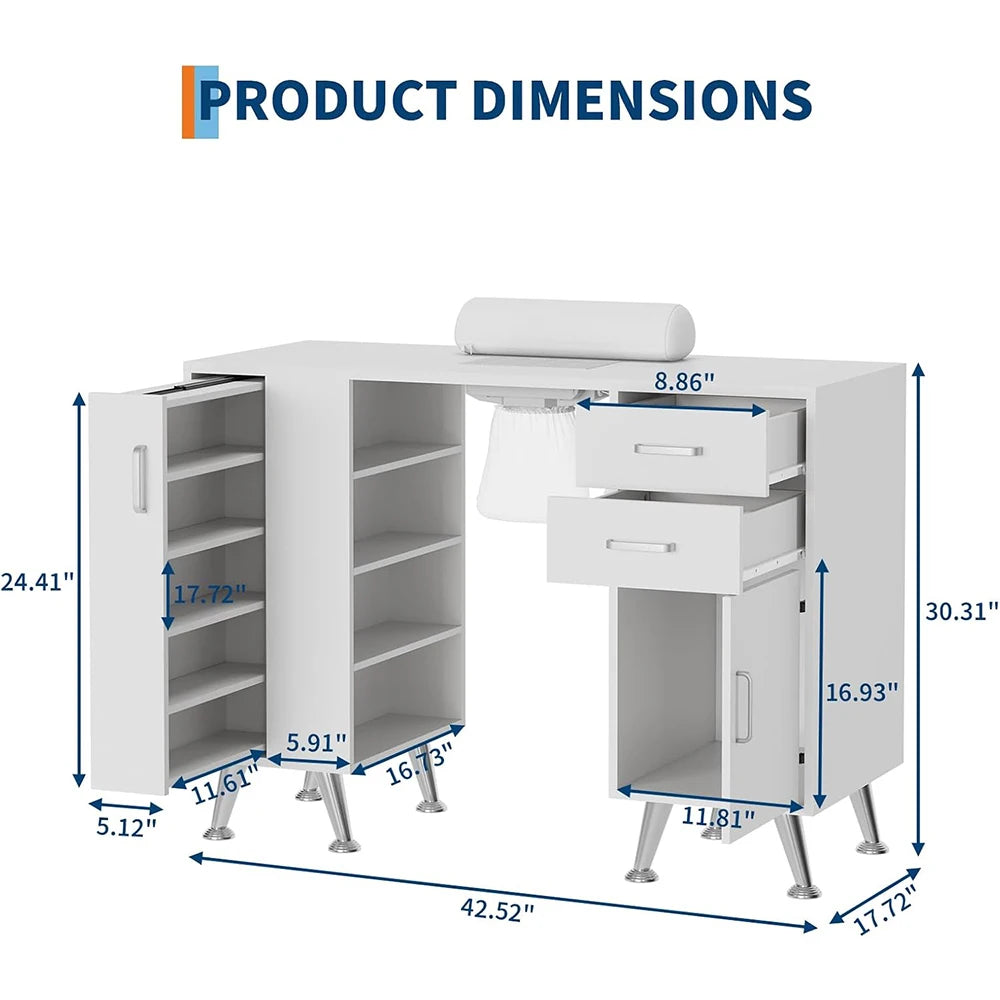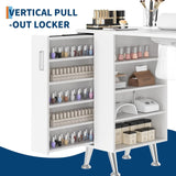 Nail Table Workstation for Beauty Salon Manicure Table Nail Desk with Vertical Locker Storage Cabinet 4-Tiers Open Shelves